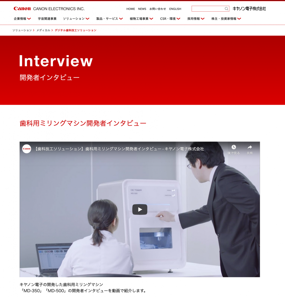 歯科用ミリングマシン開発者インタビュームービーコンテンツを公開しました。