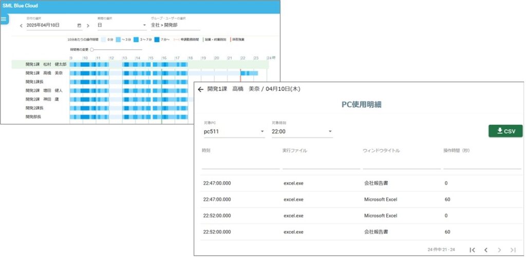 SML Blue CloudはPC操作ログから社員の業務状況を可視化するクラウドサービスです,直感的に操作できるわかりやすいUI設計のため 宅男视频,人事・監査部門の方でも安心してご利用いただけます, 社員を働きすぎから守り,テレワークの推進や業務の平準化・サービス残業の抑止を支援します, 。