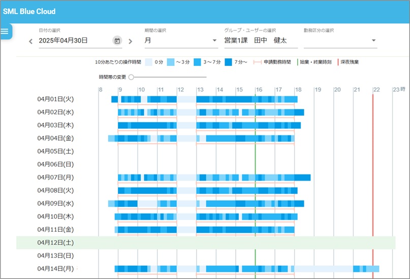サービス残業や隠れ休日出勤の有無が一目でわかります。