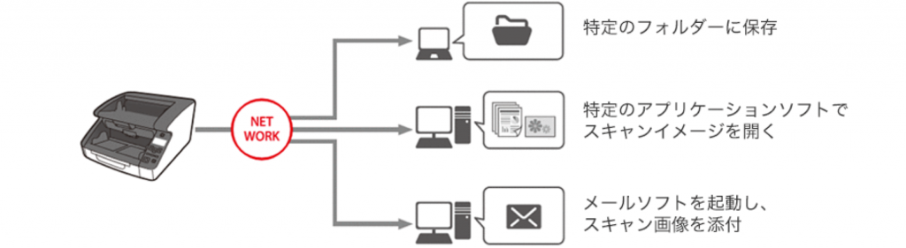 使いやすいコントロールパネルと便利なジョブ機能を搭載しています。ジョブ機能は99個まで登録することが出来、いつでも簡単にスキャン機能を使うことが出来ます。たとえば、スキャンした原稿を指定したフォルダーに保存する等の日常的なスキャン業務をジョブ登録ツールから登録しておけば、本体上のボタンを押すだけで簡単に実行することができます。
